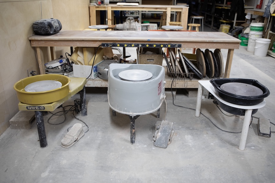 Sharing part of an newly renovated upstairs with the lapidary studio, potters are able to make use of our: